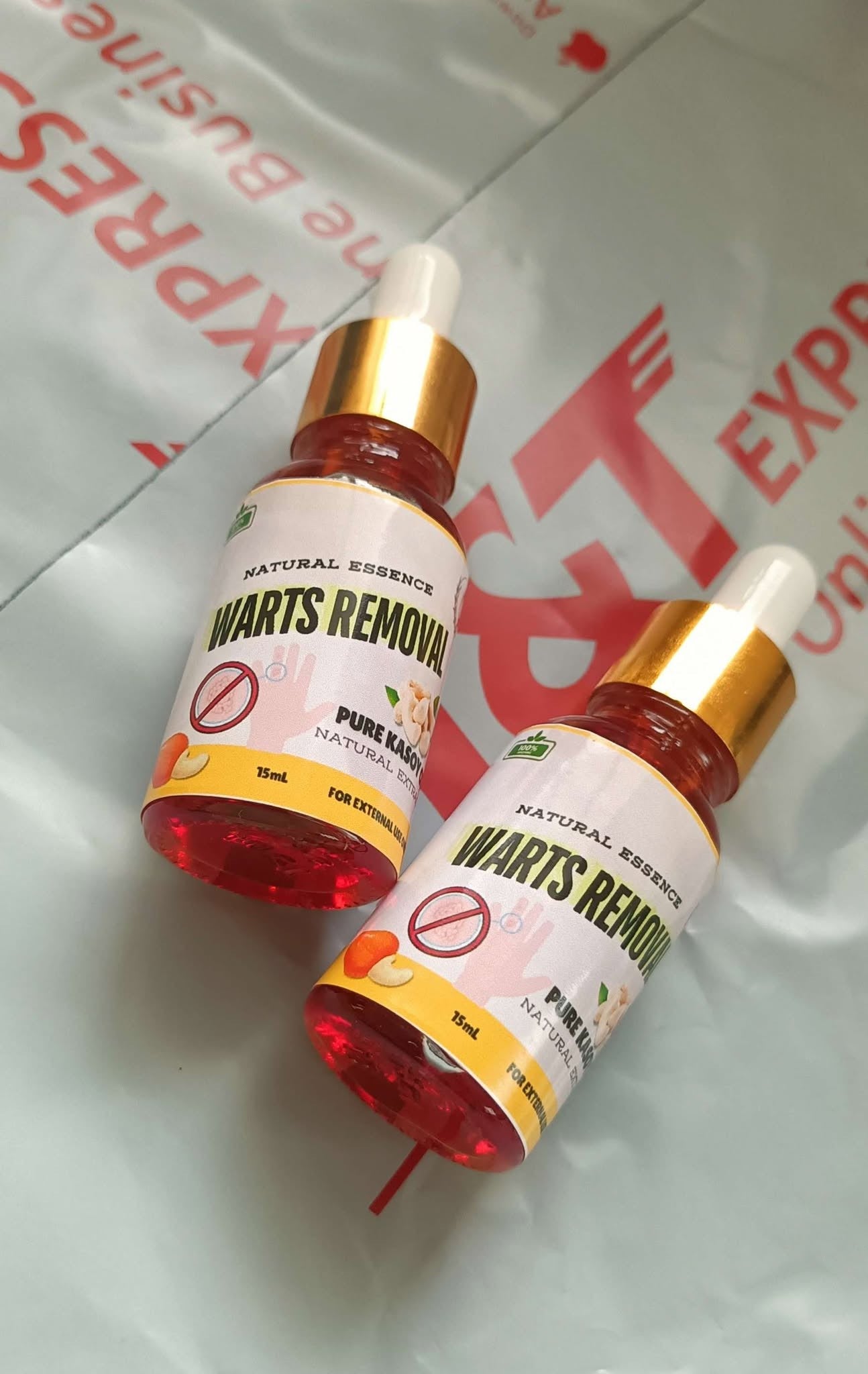 Apply 2–3 drops directly on the wart/skin tag, 1–2x daily