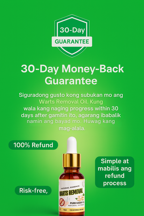 Yes! 30-Day Money-Back Guarantee Kung sinunod mo ang tamang paggamit at walang visible results within 30 days, ibabalik namin ang iyong bayad — no worries, no hassle. Because we’re confident in our Oil quality and results!